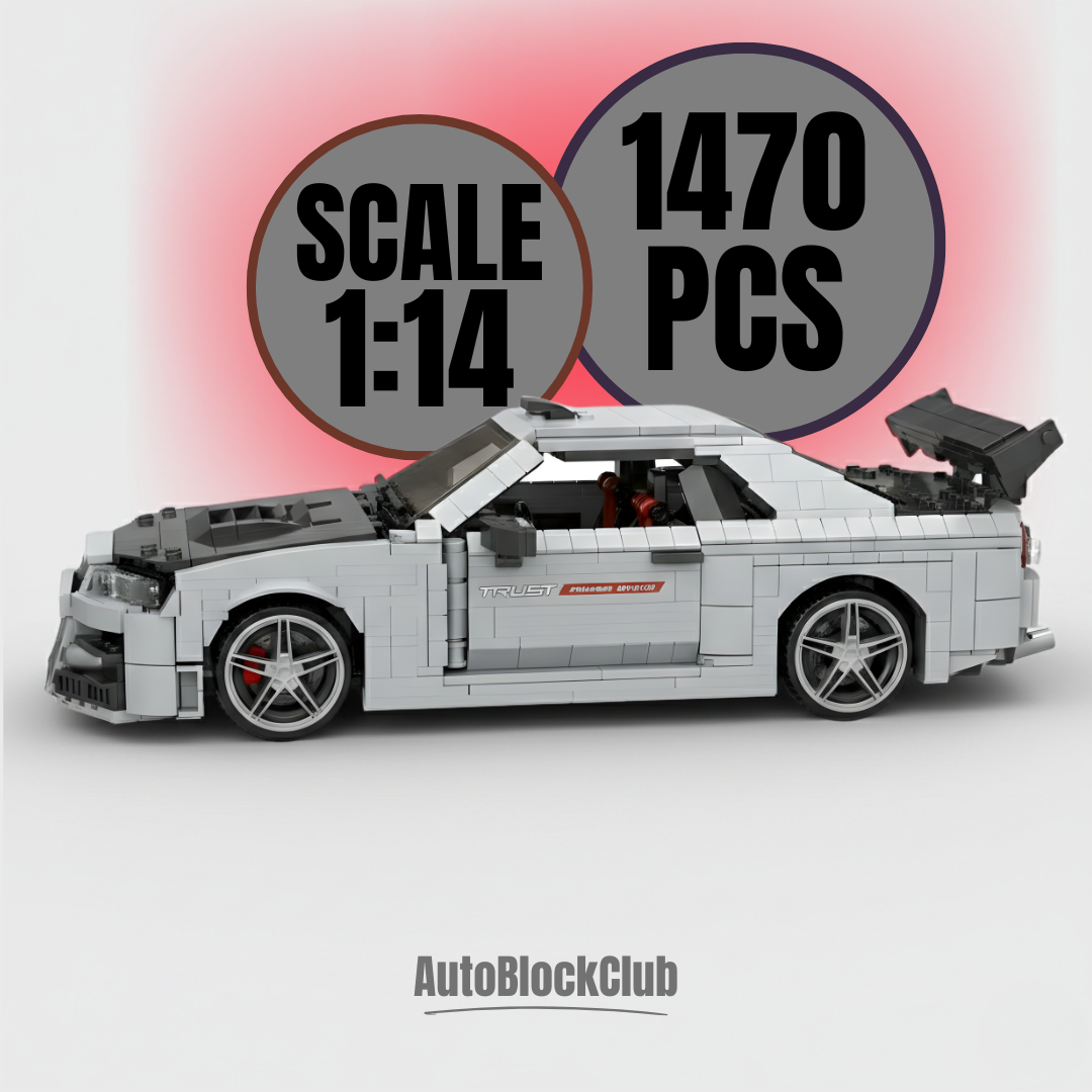 The Nissan GT-R R34 earned the nickname “Godzilla” from the Australian press for its total dominance on the track. Equipped with the RB26DETT twin-turbo engine and the advanced ATTESA E-TS Pro AWD system, it became a motorsport legend. This set celebrates its legacy — bringing its power and precision into the world of construction blocks.