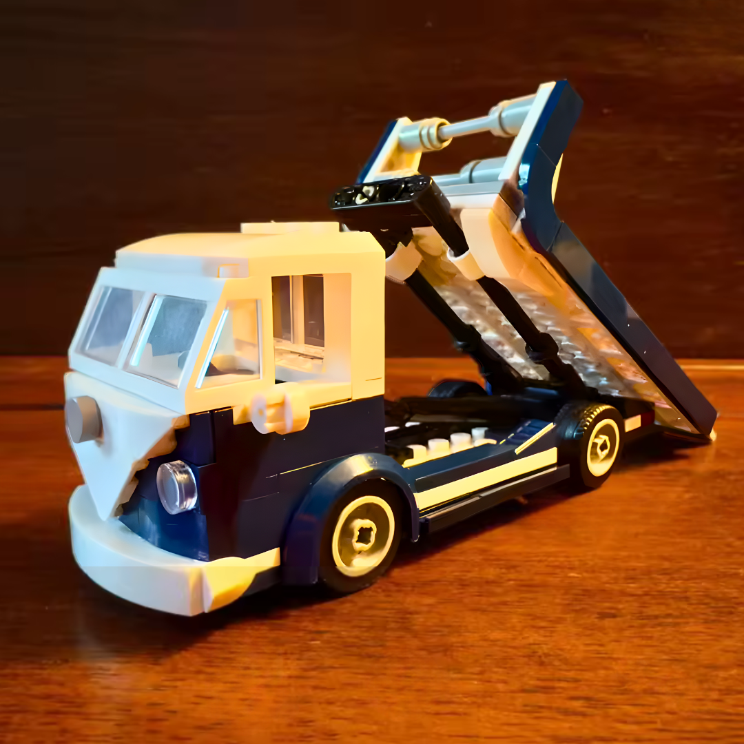 Bring home this iconic Volkswagen T1 Crane , converted into a scale model rescue vehicle . With 208 premium construction pieces , this model combines the best of retro design with the functionality that only a classic can offer. Yes, the ramp is movable!