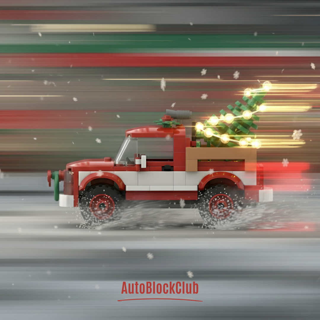 La pick-up navideña definitiva. Este set AutoBlock, basado en las míticas pick-up Ford que cruzaban pueblos cargadas de abetos, convierte en bloques esa escena de película: carrocería robusta, ruedas todoterreno y la caja llena de árboles de Navidad.